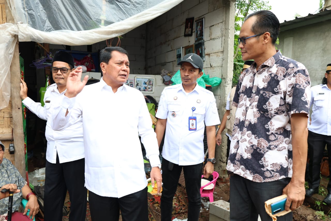 Bupati Tangerang Moch. Maesyal Rasyid nganjang ka bumi Ibu Sati (63), randa ti Désa Talok, Kacamatan Kresek, anu runtuh kusabab hujan ageung sareng angin kenceng sababaraha dinten ka pengker dina dinten Rebo (14 Januari 2026).