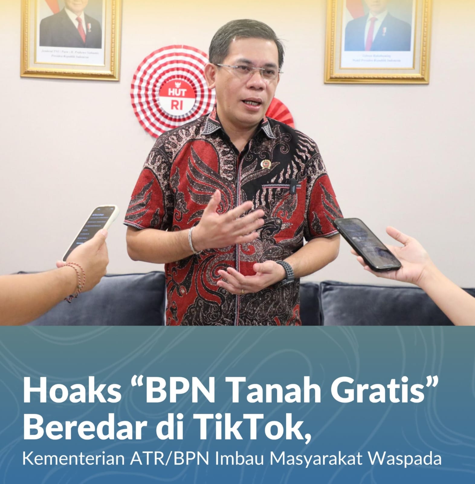 Belakangan beredar informasi di platform TikTok mengenai akun yang menyebarluaskan hoaks “BPN Tanah Gratis” Jakarta, kamis (21/08).