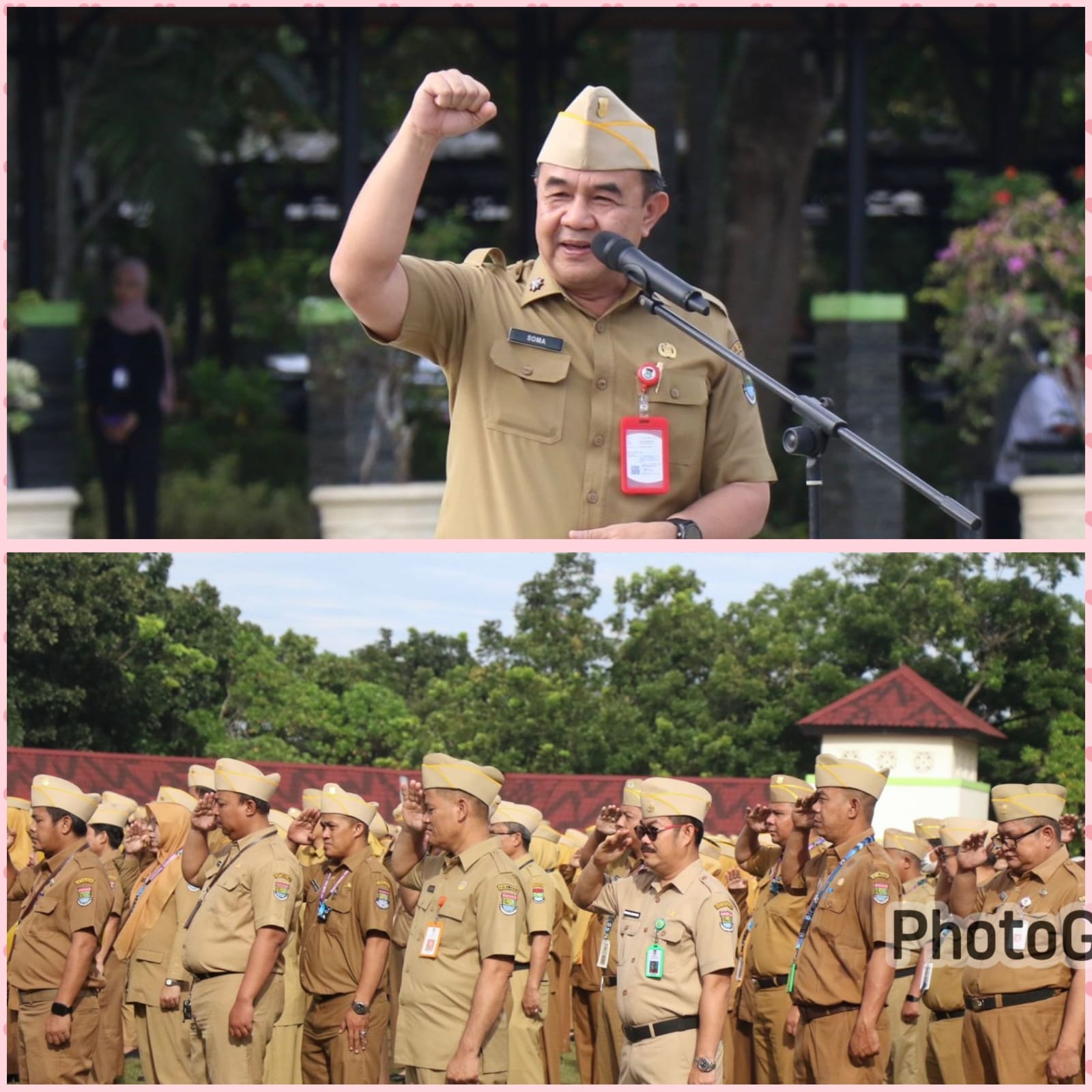 Sekretaris Daérah (Sekda) Kabupatén Tangerang, Soma Atmaja, mingpin rapat énjing Semun pikeun pagawé anu diayakeun di Lapangan Upacara Raden Aria Yudhanegara dina dinten Senén (24 Nopémber 2025).