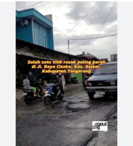 Jalan Raya Cisoka-jalan Solear Kab Tangerang, Banten, sabtu (20/12) rusak parah, diduga lambat penanganan.